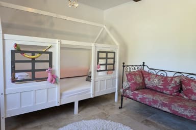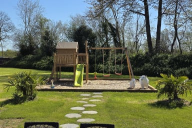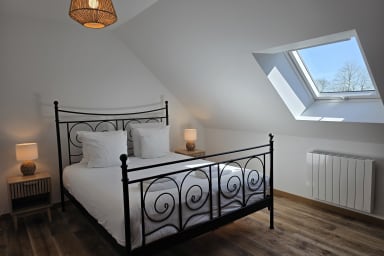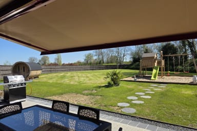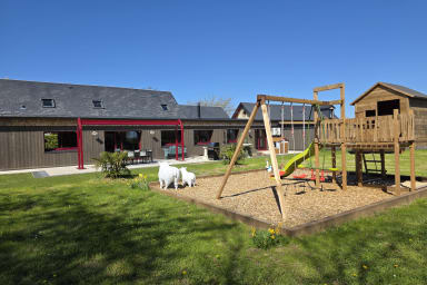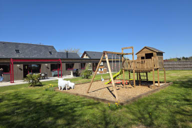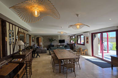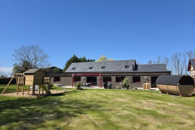 Casa rural de 300 m² totalmente renovada con sauna y jardín cerrado, ideal para 12 personas. 6 habitaciones amplias, espacios luminosos, petanca, columpio y parking. Entorno tranquilo. Mascotas aceptadas. Ropa de cama y limpieza incluidas. A 6 min de Honfleur, base ideal en Normandía.