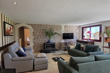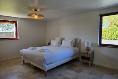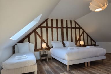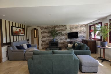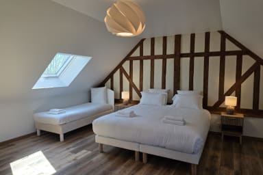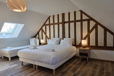 Gerenoveerde woning van 300 m² met sauna en omheinde tuin, ideaal voor 12 personen. 6 ruime slaapkamers, waarvan 3 op de begane grond, lichte ruimtes, jeu-de-boulesbaan, schommel en parking. Rustige omgeving. Huisdieren welkom. Beddengoed en schoonmaak inbegrepen. Op 6 min van Honfleur.