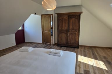 ✔️ Slaapkamer met tweepersoonsbed van 180 cm, dressing, douche en toilet
